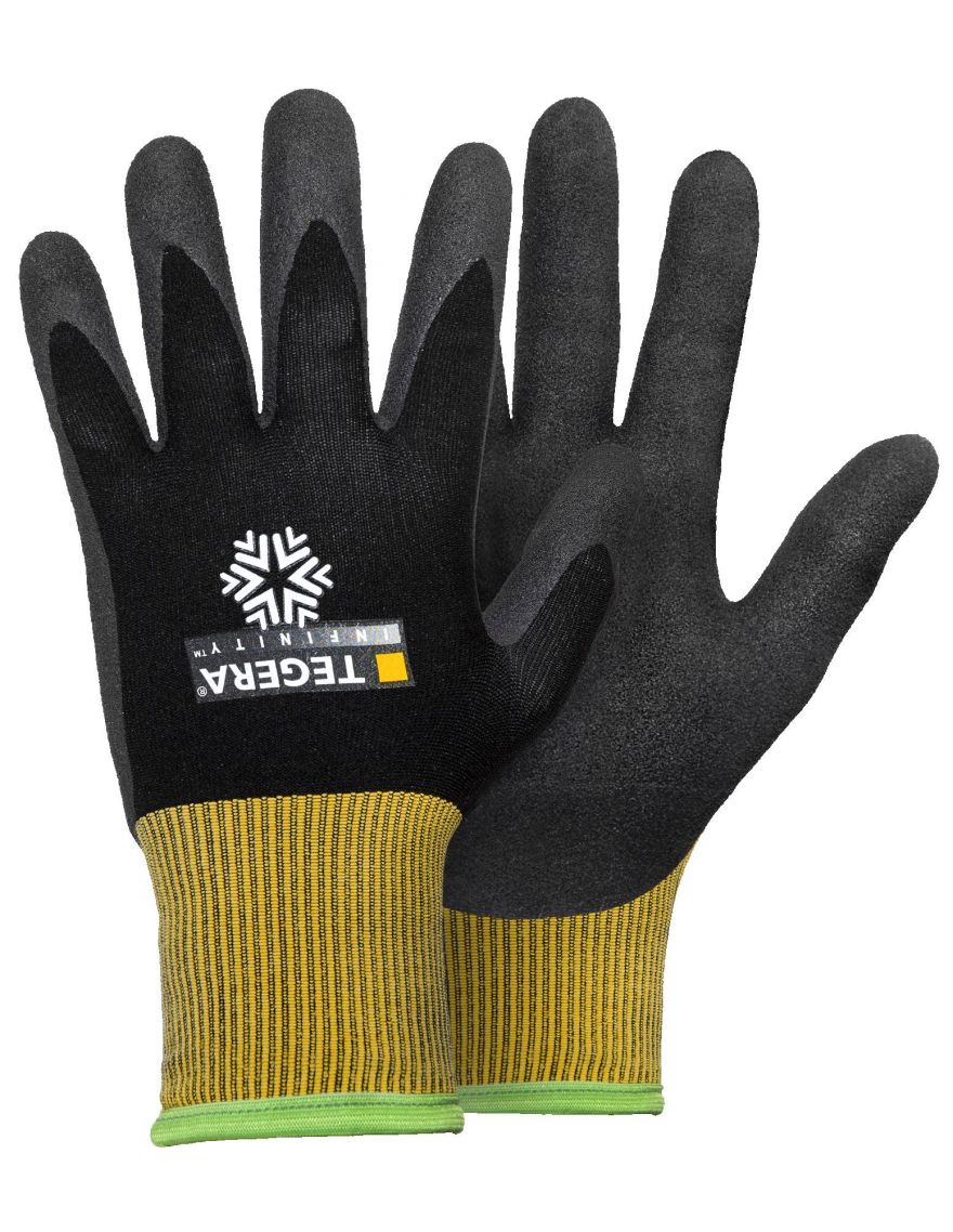 Découvrez les gants de protection anti-froid Ejendals - TEGERA INFINITY 8810. Doublés pour l’hiver, ils combinent une enduction en mousse de nitrile ultra douce et des matériaux respirants, garantissant chaleur et souplesse tout au long de la journée.